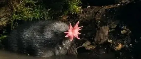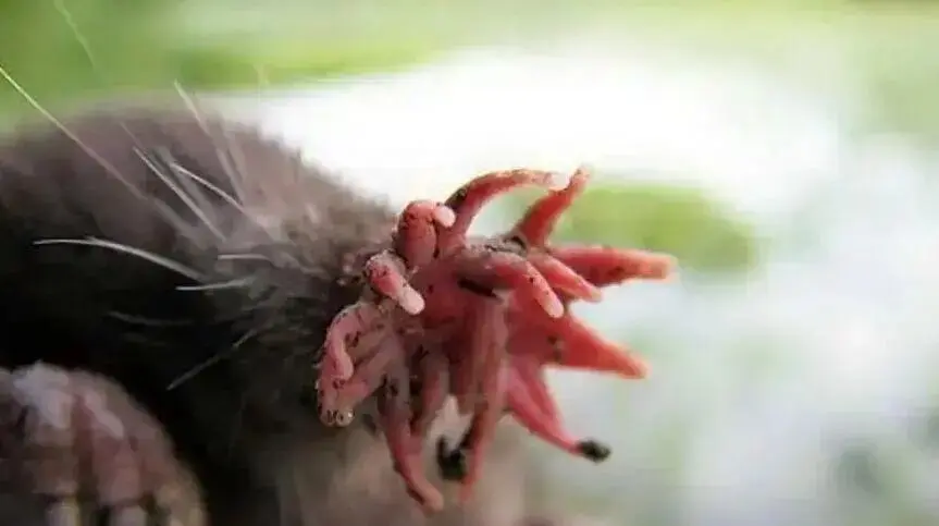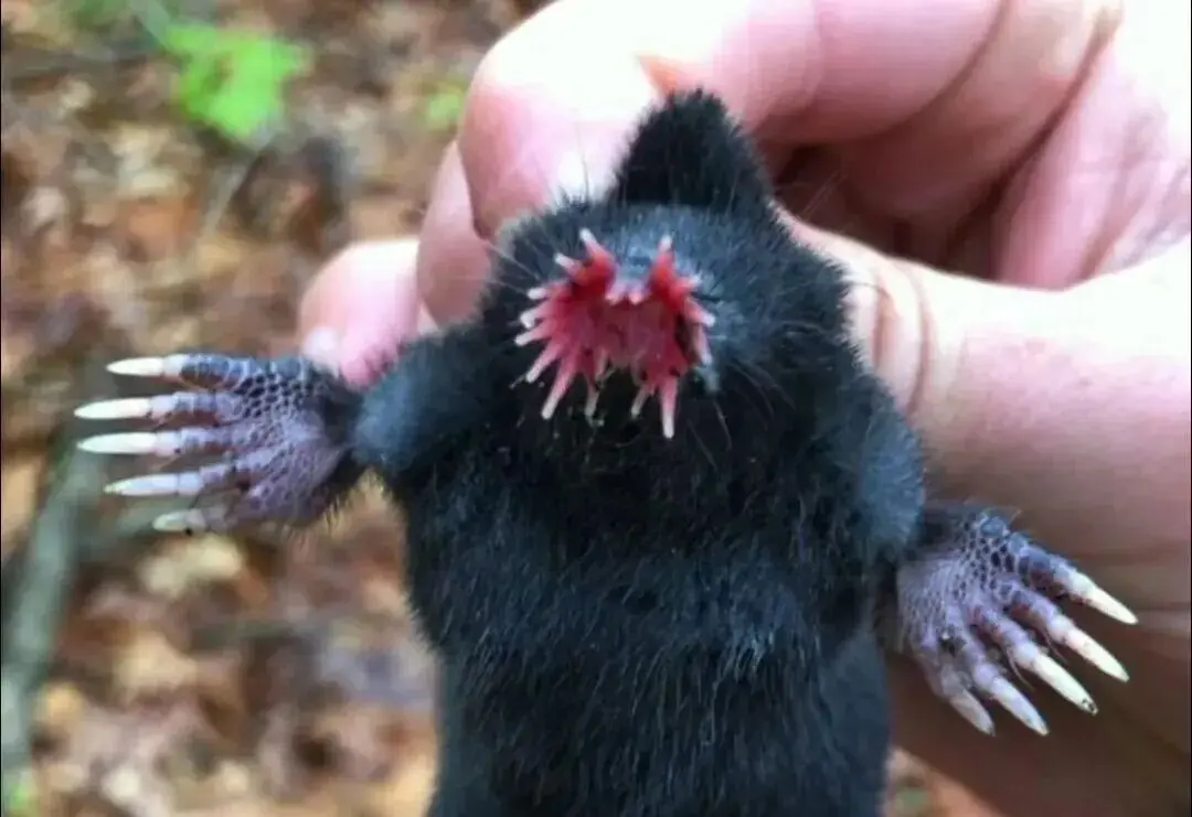 它鼻子上那一圈 22条肉质触手 ,学名叫“星状附肢”,听起来像章鱼和鼹鼠串了个门,结果生出了个怪胎。